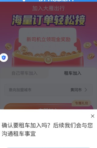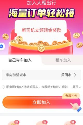 4、进入首页后,可在线申请加入司机行列,成功加入后就能轻松接单。