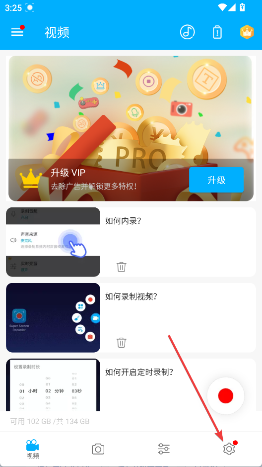 1、打开超级截图录屏大师app,点击右下角“设置”
