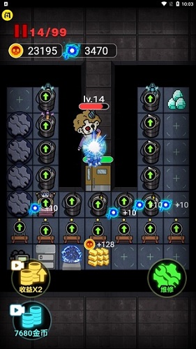 2、门能撑住的情况下,将金币优先投入到游戏机中,保证电力的生产。