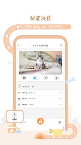 3、 多尼斯APP还提供了远程喂食的功能,即使主人不在家,也能按时给宠物投放适量的食粮,保证宠物的饮食安全。