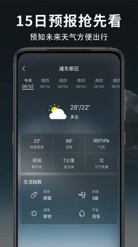 3、15日天气预报功能也能够让用户预知未来天气,出行更加轻松无忧。