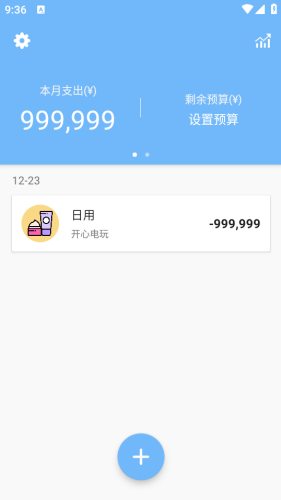 2、无需新手引导,也没有权限弹窗干扰,直接点击加号就能开始记账。
