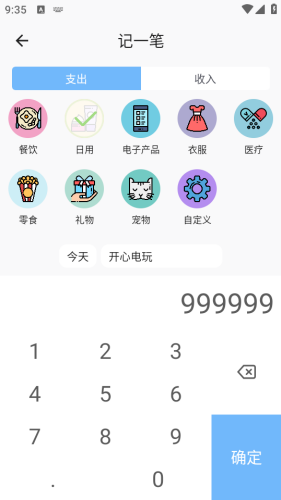 4、完成类型选择和金额输入后,就顺利完成了一笔记账操作。