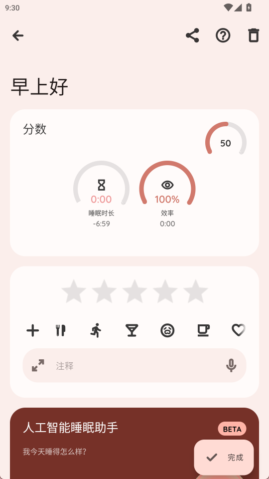 5、 数据报表:生成每日睡眠总结图,展示时长、效率及夜间觉醒次数趋势。