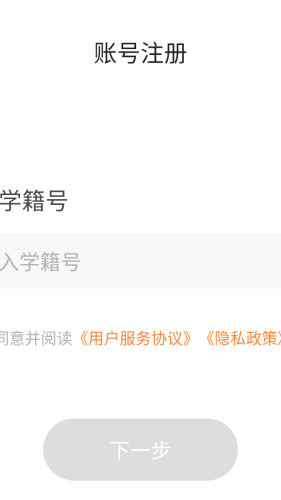 2、点击页面中的账号注册选项,输入个人学籍号,点击下一步即可完成注册流程。