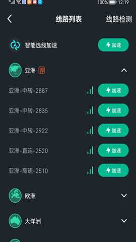 3)到加速界面点击线路选择,手动切换一条加速线路尝试