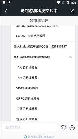 用户在六毫秒加速器的客服页面中根据自己的手机型号进行自行设置