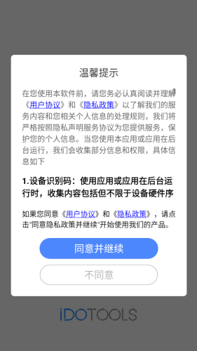 1、使用软件前,需仔细阅读并同意相关协议,方可进入主界面使用。