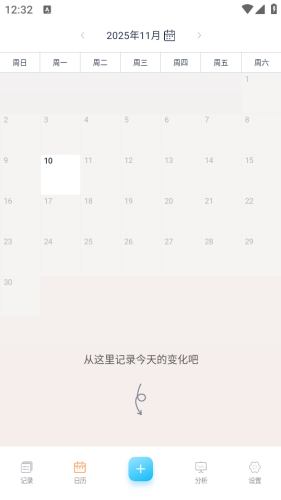2、进入主界面后,点击页面下方的+号按钮,即可开始进行各项记录操作。