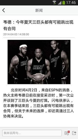 针对每场比赛有单独的聊天室,您可以随时随地和体育迷一起交流看法。不管你是湖人、科比、热火、詹姆斯、韦德、巴萨、皇马、拜仁、切尔西、恒大还是其他球队的球迷,在这里,您都能找到组织!
