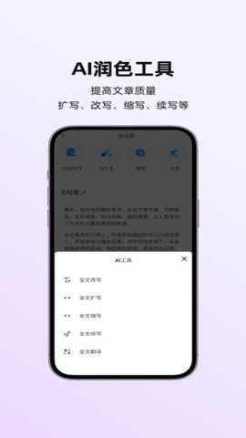 1、该应用支持多项功能,包括AI对话、多场景模板、AI工具润色、改写、扩写、缩写、续写、AI文生图、图生图、素材写作等,全方位提升用户的写作效率。