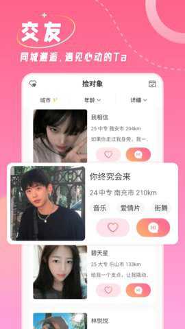 1.捡对象是一款免费的聊天交友软件,旨在为用户提供一个轻松愉快的社交平台。
