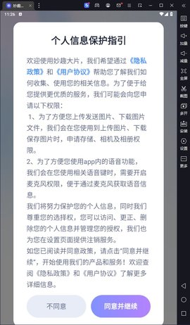 妙趣大片是一款专业且功能强大的视频编辑工具,为用户提供便捷的短视频创作体验,都能满足你不同层次的需求,帮助你快速制作出吸引眼球的作品,用户首先会看到一个友好的界面,系统会提示用户是否同意相关条款,点击同意后便能顺利进入软件的主界面。