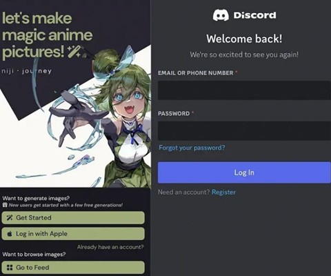 1、登录您的帐户开始使用新帐户或直接使用您的Discord帐户登录,帐户和订阅计划可以与现有的NijiJourney和Midjourney帐户同步