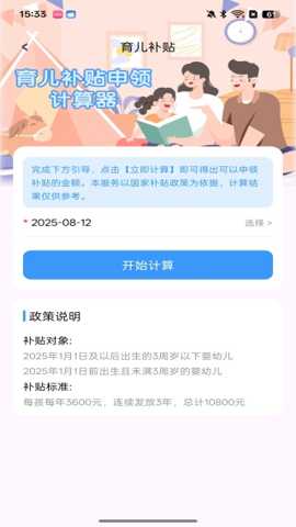 2、内置的动态计算器功能,用户只需输入婴幼儿的出生,便可秒获精准的补贴金额预测结果,省时省力。