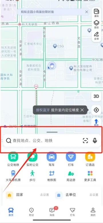 3、在搜索栏中输入目的地后,点击右下角进行路线导航。