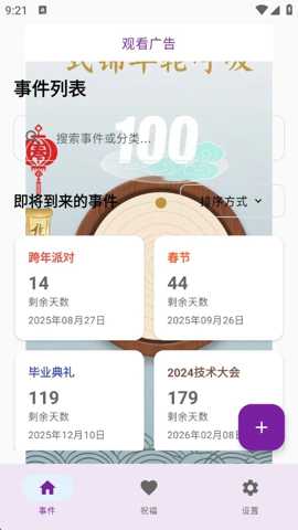 1、添加各类倒计时事件,用户只需简单几步就能记录下这些重要的时刻,确保不会错过每一个值得纪念的日子。