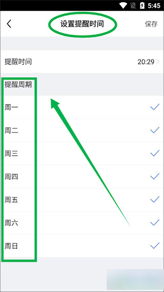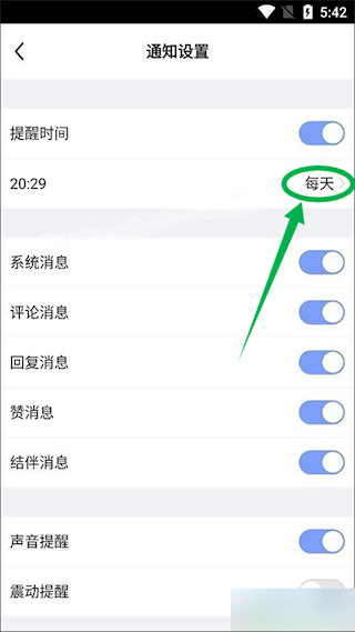 5、设置每日练习提醒,调整提醒周期和时间。