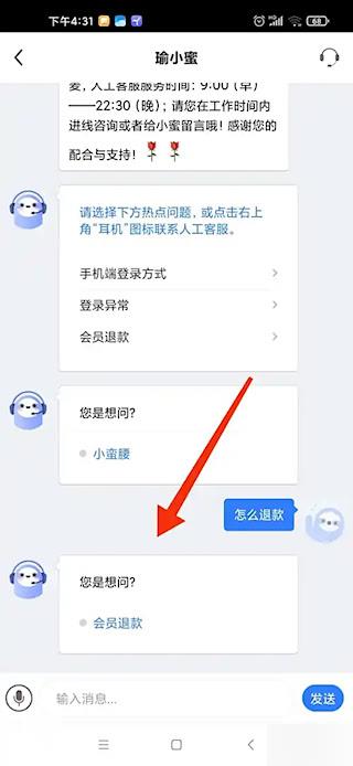 3、点击在线客服,发送“怎么退款”咨询退款流程。