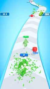 钞票收割机游戏是一款非常好玩的休闲跑酷类型游戏,玩家们随身自带有吸钞票的能力在你路过钞票旁边的时候会将它们给吸附在身上,从游戏开始到游戏结束,你能吸到越多的钞票就能够获得越高的得分,游戏的操作非常简单,只要玩家们控制角色的左右移动即可。