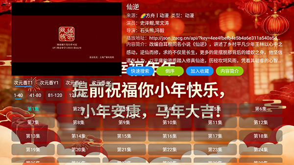 幸福年年贺岁影仓自带影视源接口的影视盒子软件,支持电视端用户使用,手机端用户也能安装,自带海量且丰富的正版影视资源,内容全面多元,覆盖动作大片、爆笑喜剧、浪漫爱情、硬核科幻、悬疑惊悚、经典纪录片等多种题材类型,无论是热门新作还是经典老片都能轻松找到,全方位满足不同观众的观影口味与追剧需求。