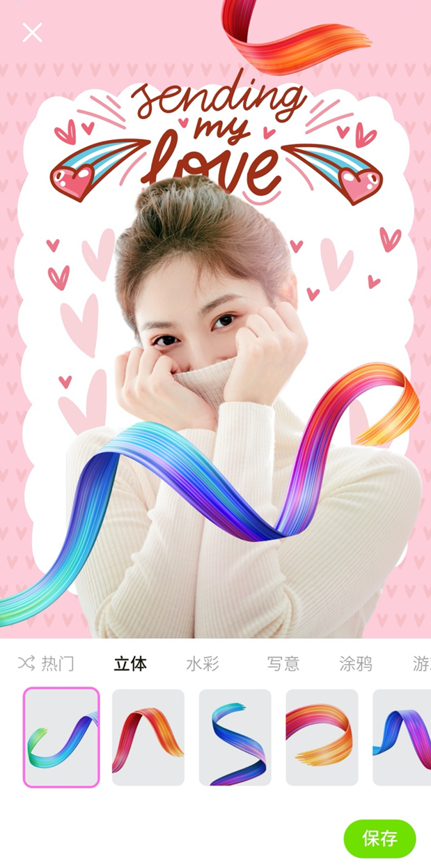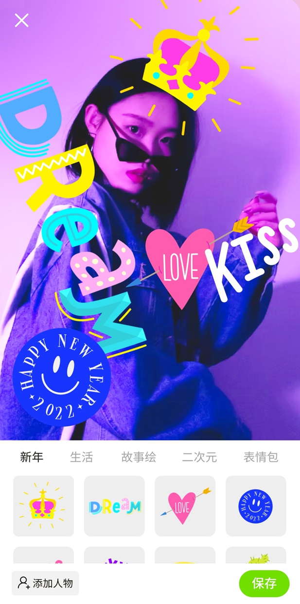2、拥有丰富贴纸素材库,可以灵活搭配,轻松制作个性化照片作品。