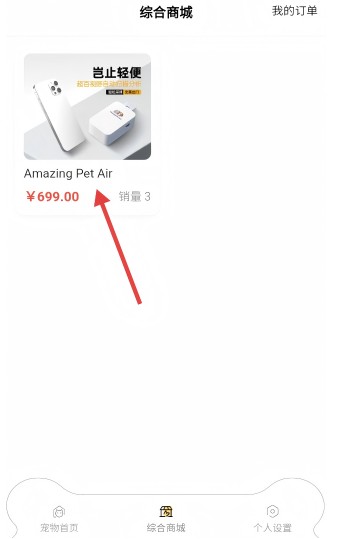 2、在综合商城内找到【AmazingPetAir】商品,点击进入产品详情界面。