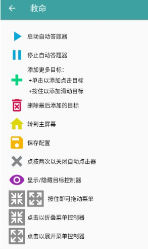 1、预先设置自动点击或滑动的屏幕位置,确定答题时需触发的具体操作点,附各种功能按键说明。