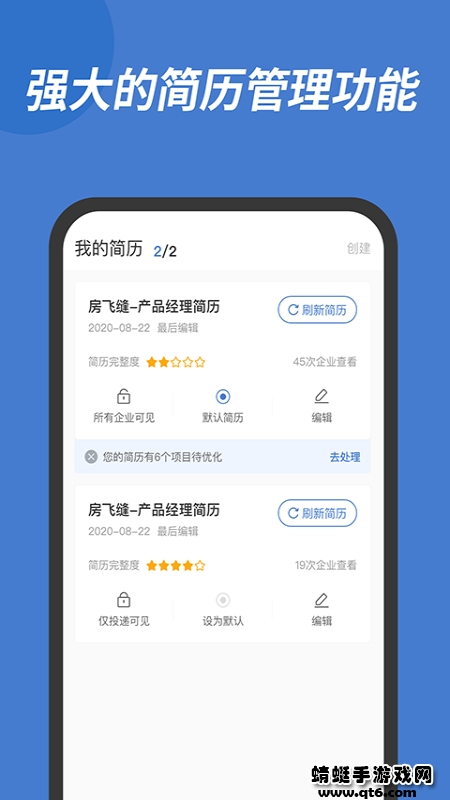 3.简历编辑与管理,让找工作更有胜算。