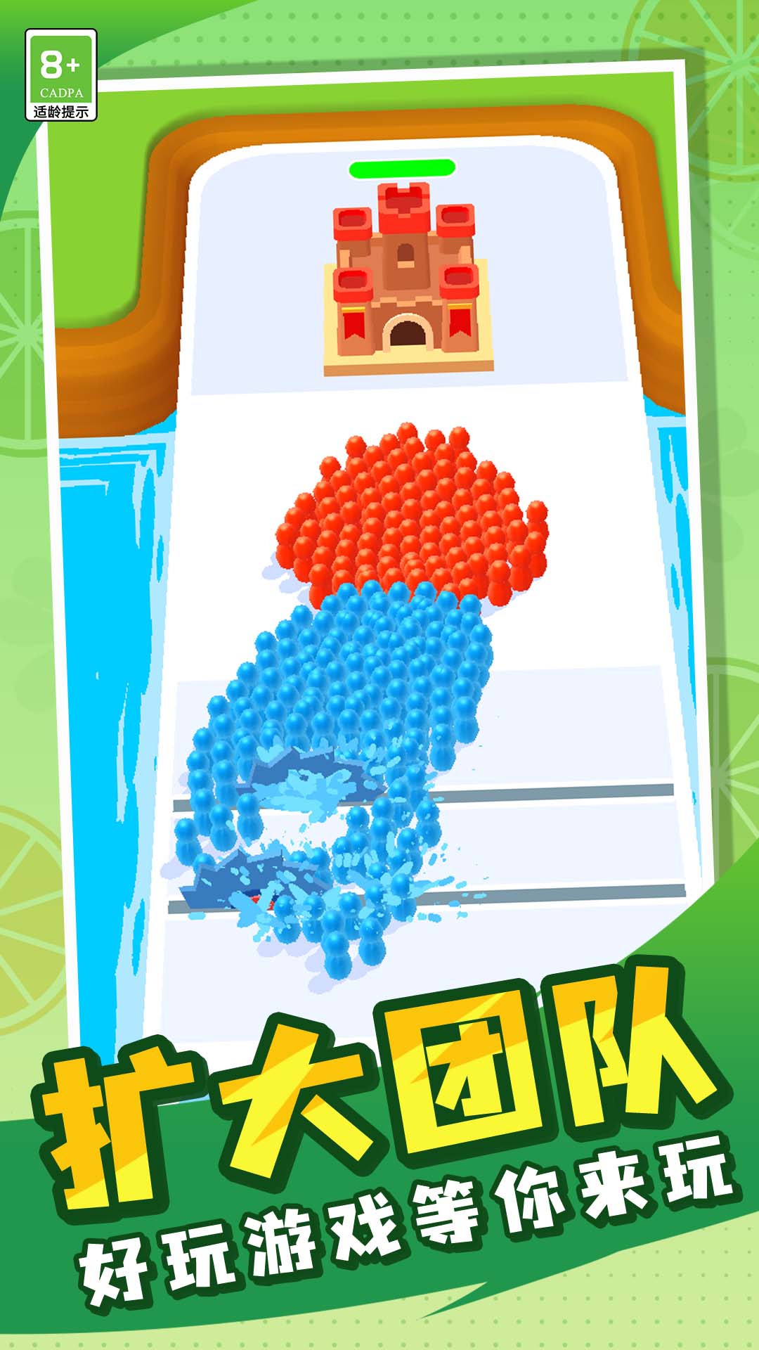 3、通过关卡收集人数增益,壮大队伍规模,提升碰撞障碍时的生存能力,解锁多人协作特效。