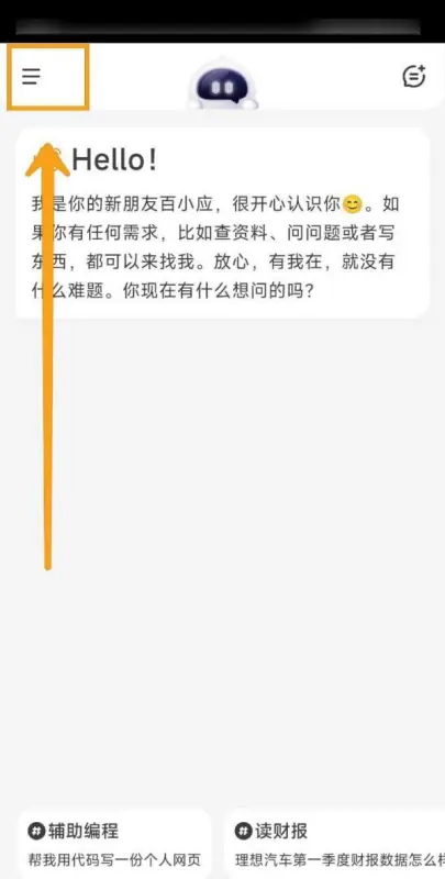 1.打开百小应App,点击界面中“三横”的图标