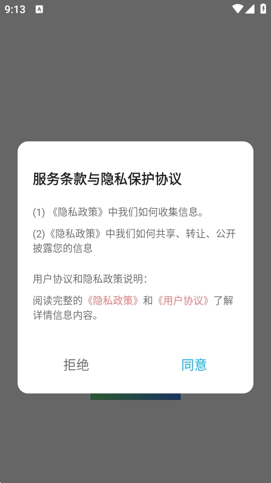 1、下载安装图卷拼图app后,打开软件查阅隐私协议,点击“同意”进入主界面。