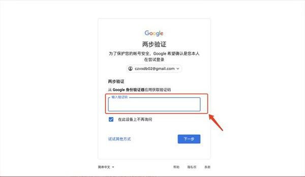 8、再次登录账号时,就可以直接使用谷歌两步验证的验证码完成登录