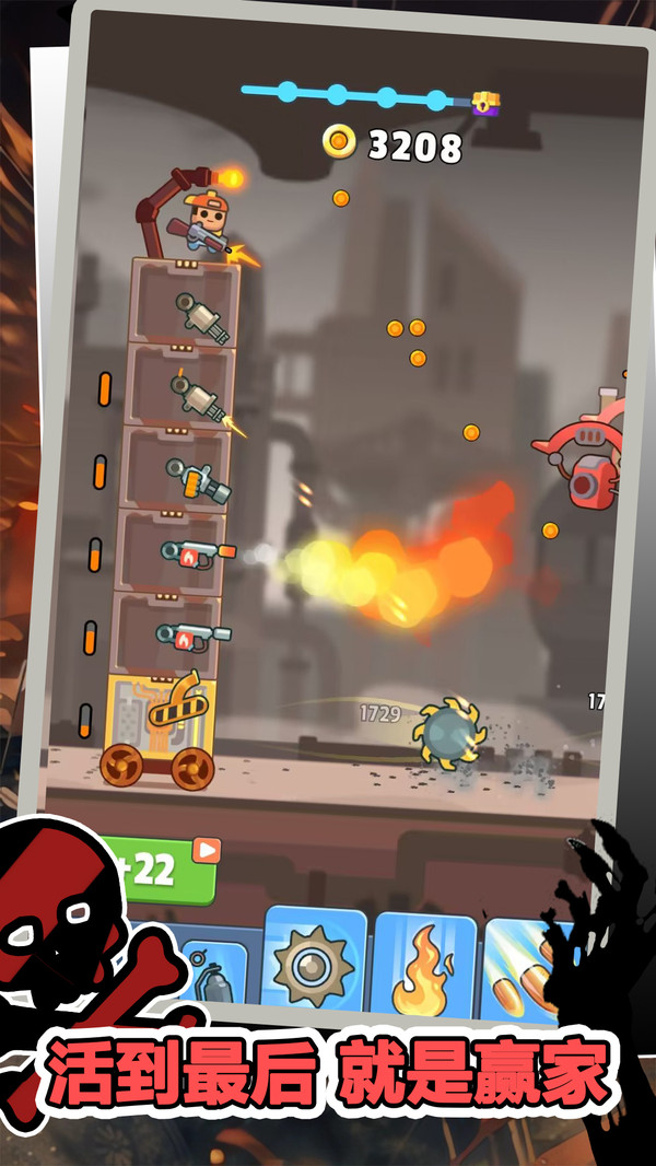 2、消灭僵尸后获得金币,及时点击升级按钮强化你的塔楼威力,或者建造新的塔扩大防线。