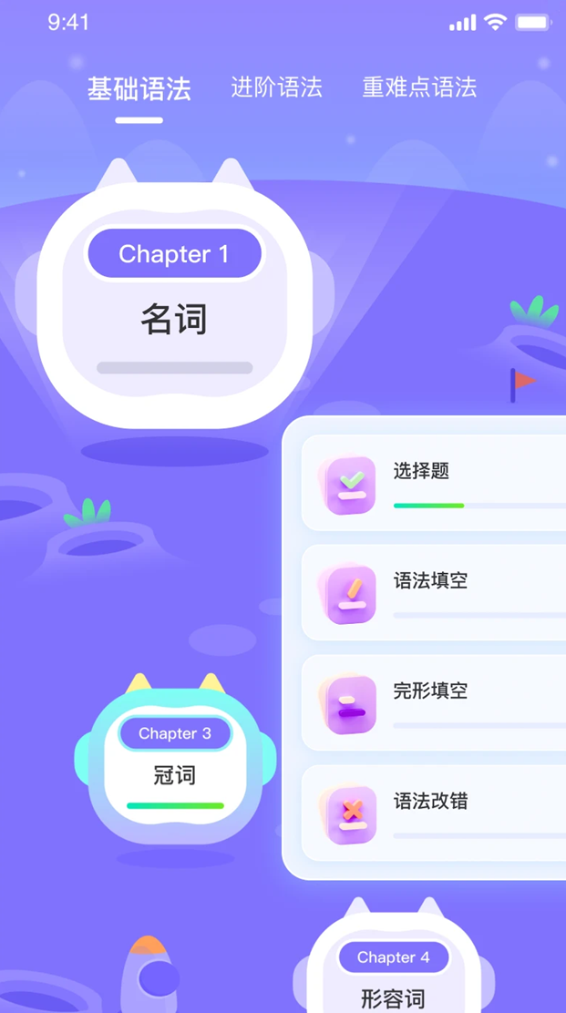 1、设置娱乐化闯关学习模式,打破枯燥学习氛围,提升学习过程的趣味性。