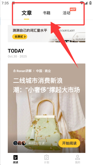 1、 精准水平评估:通过词汇量测试了解当前英语程度,系统据此推荐合适难度的文章,避免内容过难或过易影响学习效果。