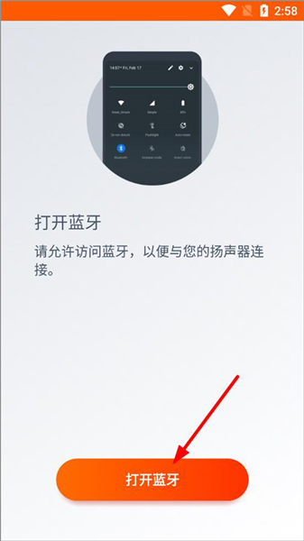 1、打开软件,进入主页,用户需要打开蓝牙以便连接扬声器;