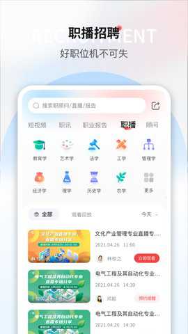 1、一览职业招聘还特别注重高校招聘,它汇聚了各种高校招聘会,让怀才之人有机会与伯乐企业相遇。