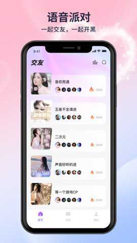 2、你可以找到与自己口味和兴趣爱好相似的好友,快速建立起一对多的语音交流,为你打造一个小小的语音社交圈。