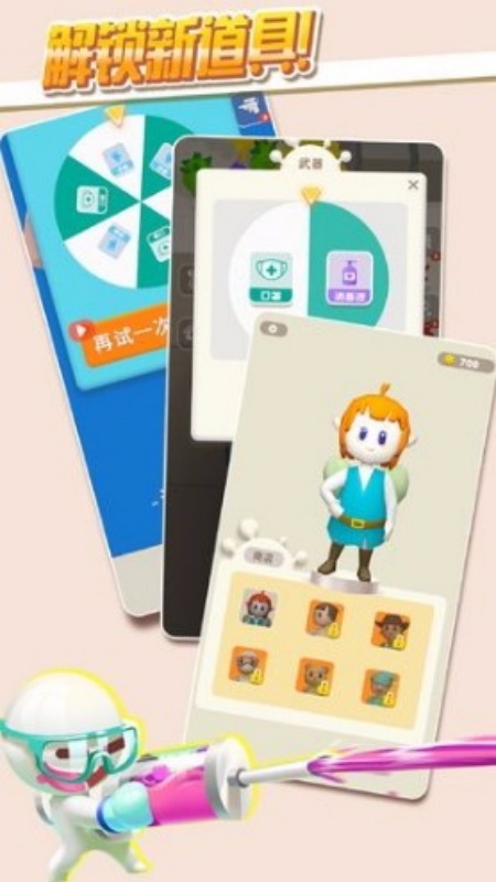 游戏中有多种角色皮肤和设备供您选择和收集。特殊武器将通过特定级别解锁。还有一个独特的武器升级系统。不要错过。