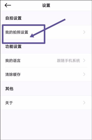 3、在自拍设置里,继续选择我的拍照设置,进入更详细的功能页面。