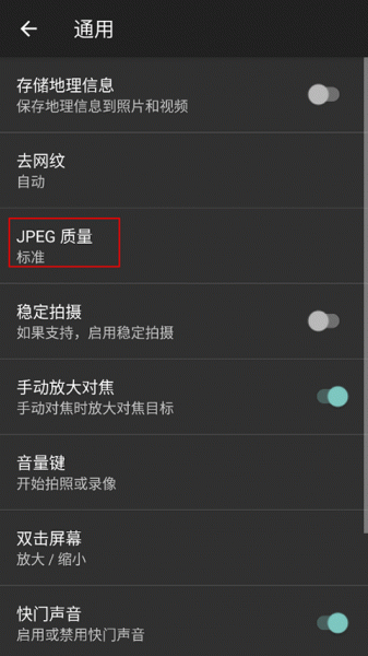 3、在通用设置页面中,点击“JPEG质量”选项。