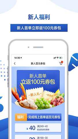 3、同时麦德龙网上购物超市还为新用户提供福利,新人首单立即返100元券包,让用户可以更加愉快地购物。