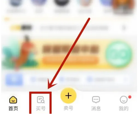 1、螃蟹账号交易app页面,点击左下角买号项目。