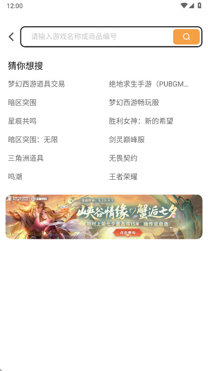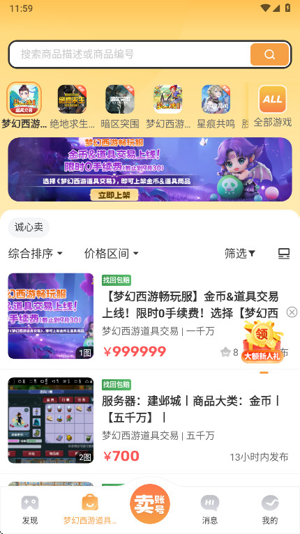 1、打开螃蟹账号代售app,在卖号界面中选择你要出售的类型
