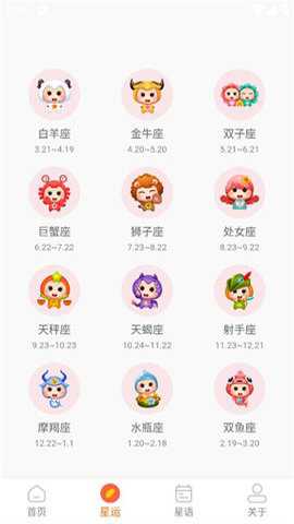 周易星座运势App还是一款非常实用的运势查询软件。提供了丰富多样的功能,不仅能够了解每个星座的运势变化情况,还能为用户提供个性化的运势预测和解读。 周易星座运势App是一个专为12星座量身定制的运势软件。不论你是白羊座、金牛座还是双子座,都能在这里找到属于你的独特运势信息。
