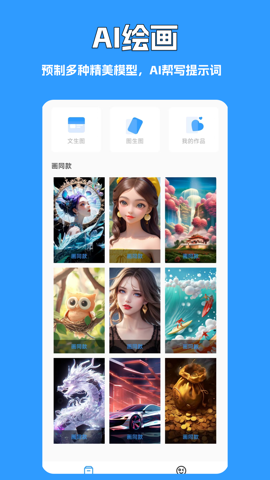 2、应用支持多种创作模式,包括AI文生图和AI图生图等,用户可以根据自己的需求选择最适合的模式。