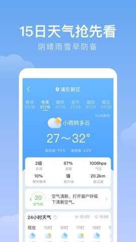 查看未来天气:您可以在应用程序中切换到未来天气页面,查看未来24小时和未来7天的天气预报信息。