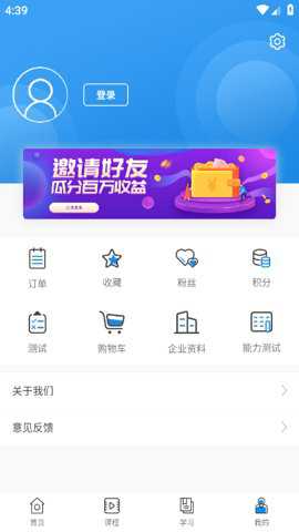 1、在我的页面上,用户可以选择订单、积分、测试、风格等功能,方便学习沟通。学有用拥有多种功能,可以满足不同的学习需求。