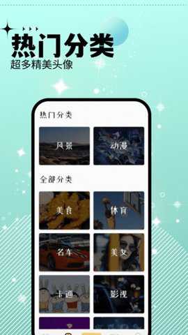 2、还有丰富的头像和壁纸分类可供选择,包括情侣头像、动漫头像等,满足用户不同的个性化需求。
